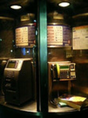 電話台の照明が綺麗。公衆電話自体は時代遅れなのですが。実際、誰も使ってませんでした。